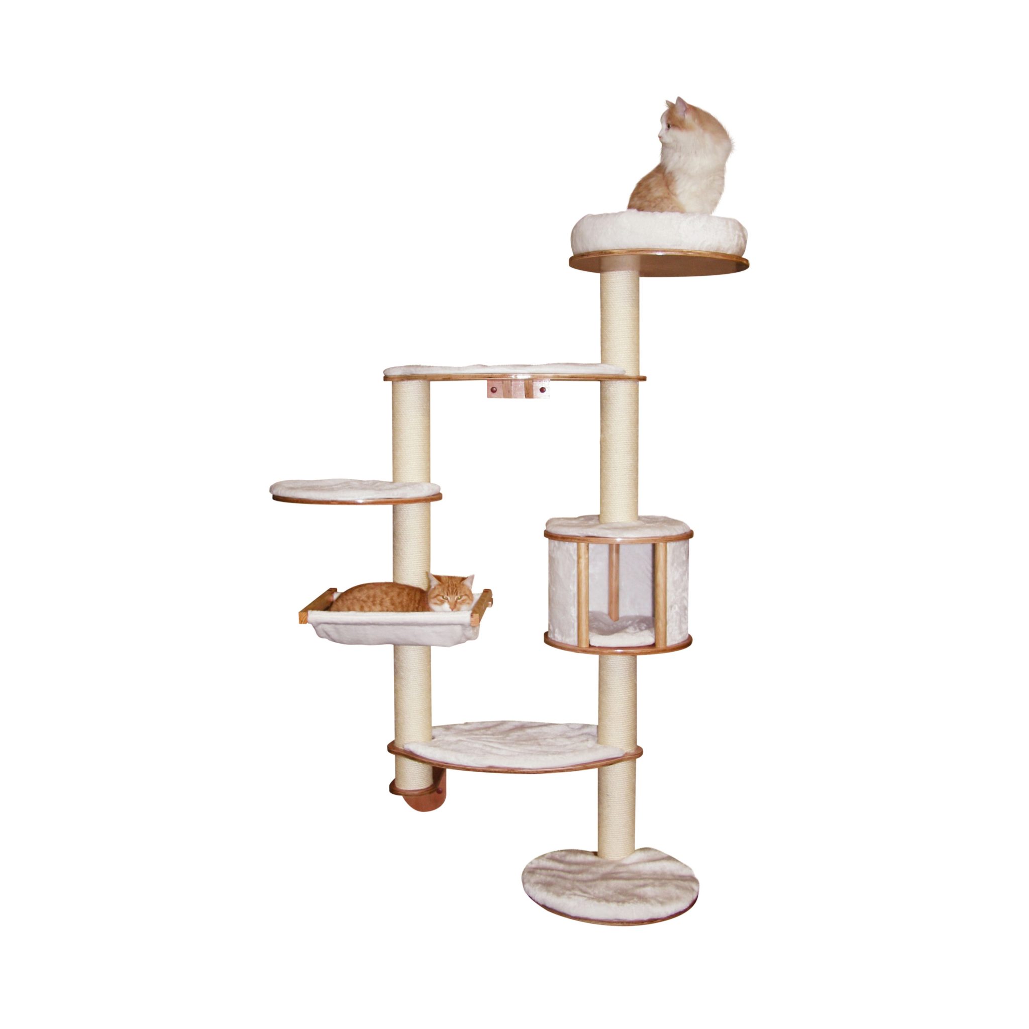Vores lille klatrevæg med kradsestolpe er mere end bare en legeplads – det er et sted for interaktiv underholdning. Den integrerede kradsestolpe giver din kat en dedikeret overflade til kløepleje, samtidig med at de kan klatre og udforske.
