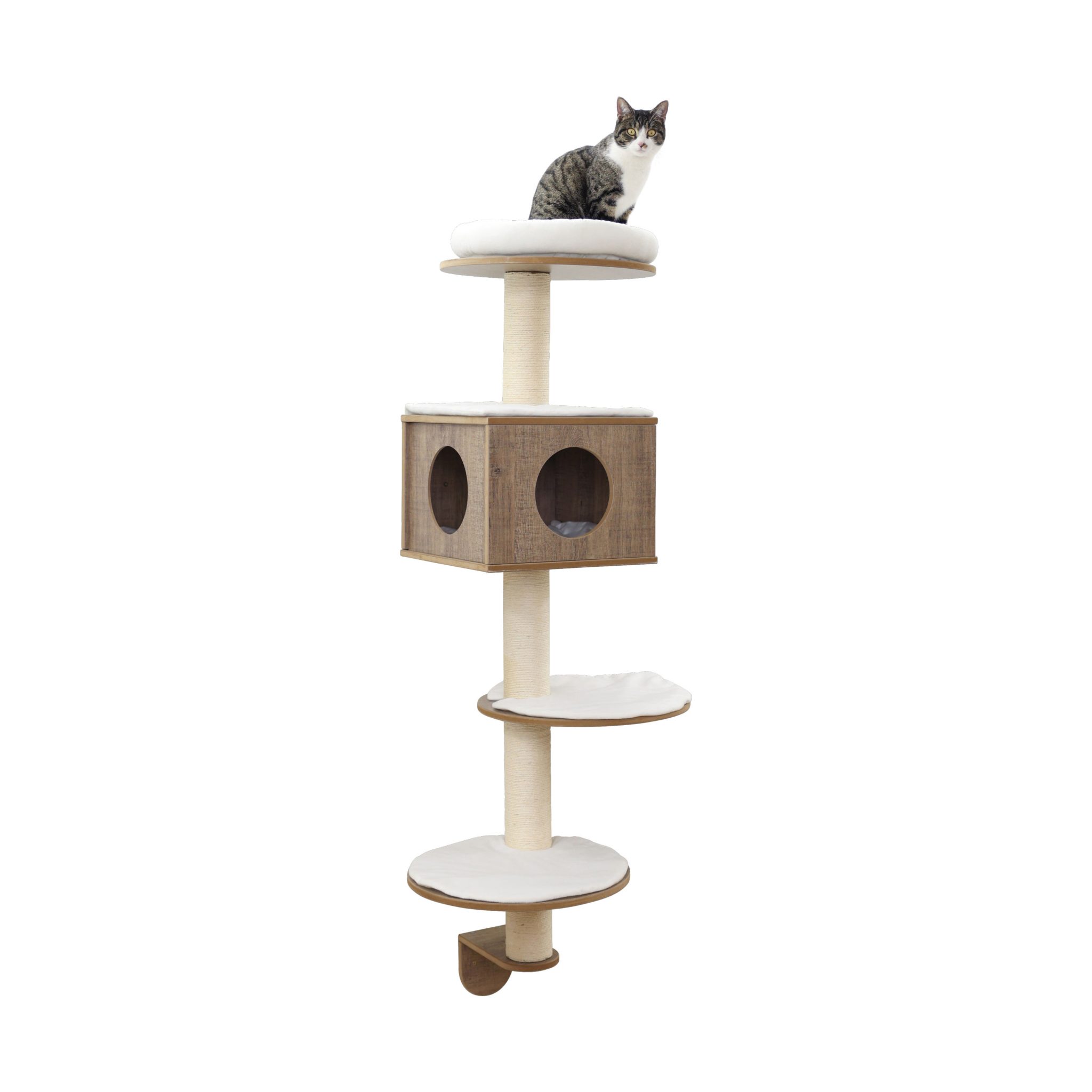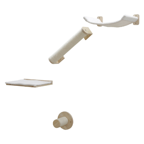 Denne vægmonterede hængekøje er en perfekt kombination af komfort og funktionalitet, der giver din kat et hyggeligt sted at slappe af og observere verden fra en forhøjet position. Med et stilrent og pladsbesparende design passer hængekøjen ind i ethvert hjem og kan nemt kombineres med andre vægelementer for at skabe en unik klatrevæg til din kat.