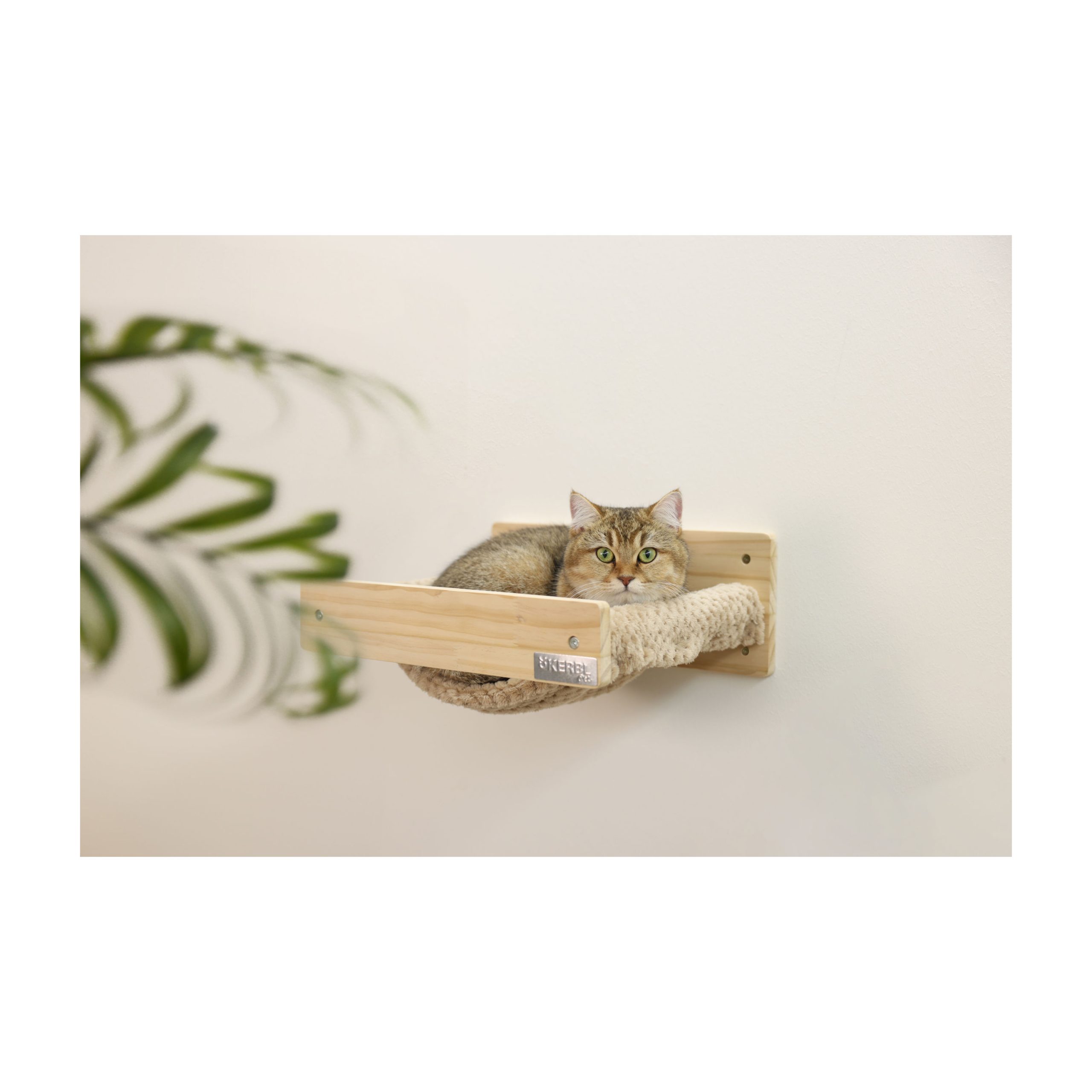Rammen er lavet af slebet massivt træ, som er både glat, robust og holdbart. Træets tykkelse på 16 mm sikrer stabilitet og sikkerhed, selv når din kat hopper op i hængekøjen. Liggefladen på 30 x 30 cm er betrukket med blødt plys (100 % polyester), som giver en indbydende og behagelig overflade, hvor din kat kan slappe af og putte sig.